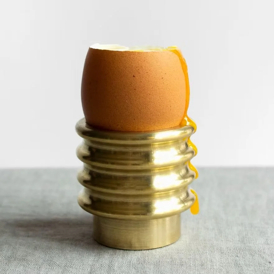 Brief: The Ottolie egg cups are a family of stackable egg cups whose form is inspired by traditional wood turning techniques but made from brass to bring an elevated sense of style to an everyday object. I particularly love this project because of the fusion between 2D and 3D design - using different geometric profiles to create a 3D product.